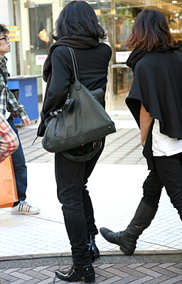 全身黒で統一したワントーンの着こなしが20代前半のモード系の...