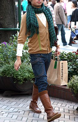 20代後半〜のフォロワー層にはカラフルなニットマフラーが着用...