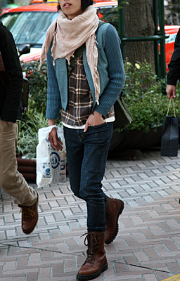 原宿の20代前半の男の子の間ではアメカジテイストのスタイルが...