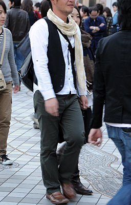 新宿ではジレやジャケットなどのきれいめスタイルにナロータイを...