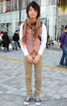 シャツとベストを合わせたトラッドな着こなし。ブリティッシュト...