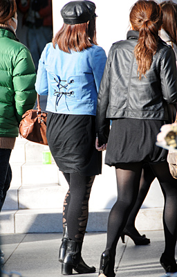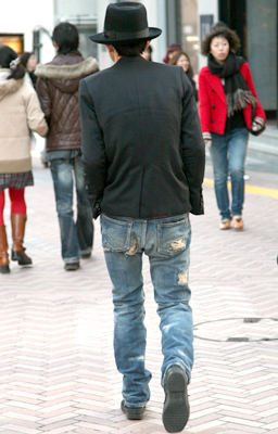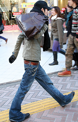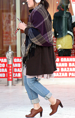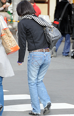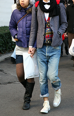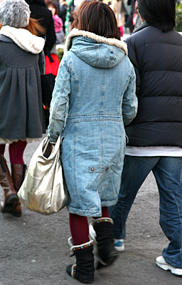 新宿ではコンサバ系のOLさんにも色落ちデニムが着用されていた...