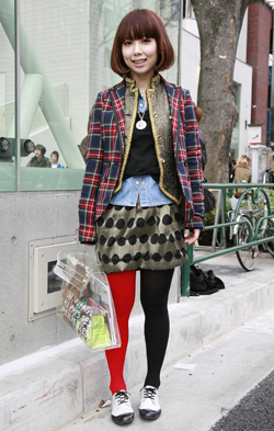 丈がヒザより10センチ以上のボトムスすべて。スカートでもパンツでもワンピースでも可。色や柄、素材は問わない。