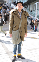 チノパンのロールアップ。Gジャンやデッキシューズと合わせたア...
