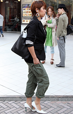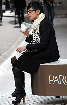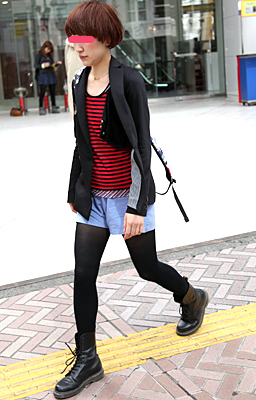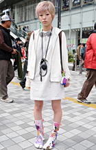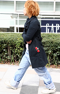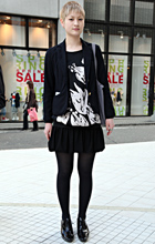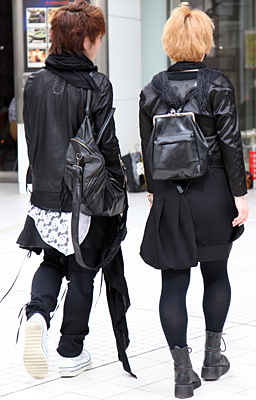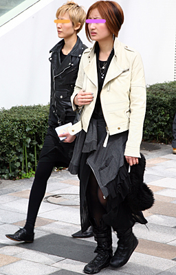 トーキョーモード系には全身黒コーディネートとブリーチヘアの組...