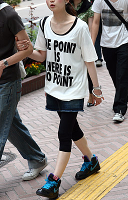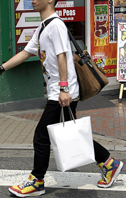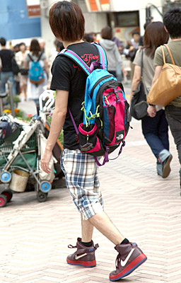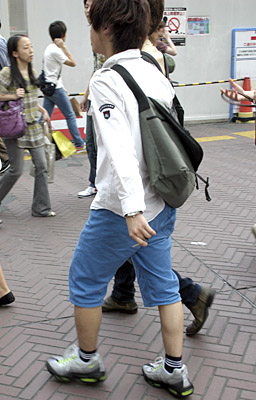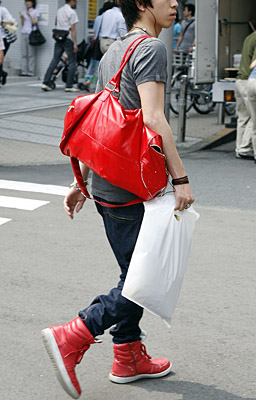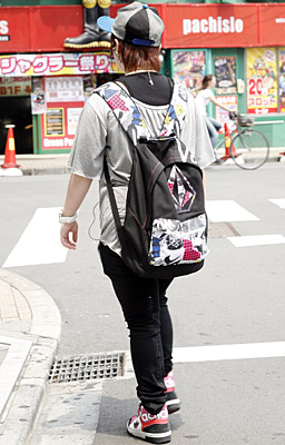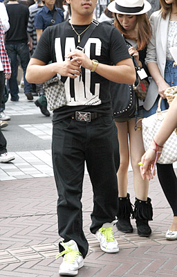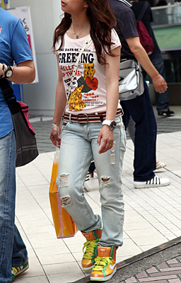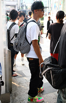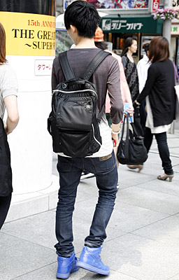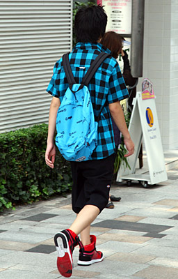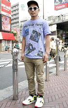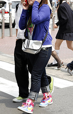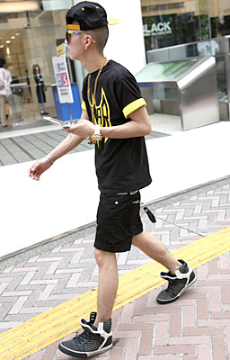 20代前半の男の子には、パンツをハイカットスニーカーにインす...