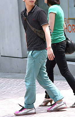 08年頃はメンズに多かった、パンツの裾をインしたスタイルが、...