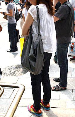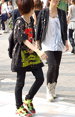 原宿ではニューウェーブスニーカーのカップル着用も見られた。靴...
