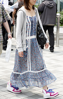 マキシワンピとスニーカーの組み合わせもボリューム化。フェミニ...