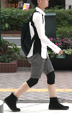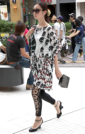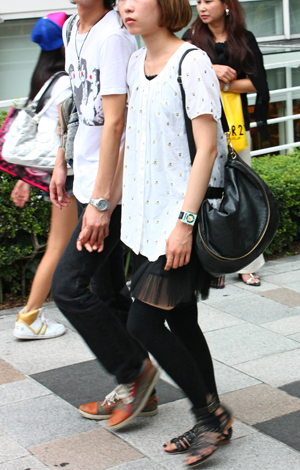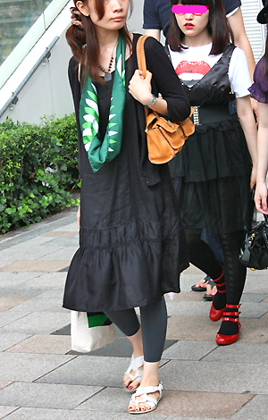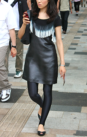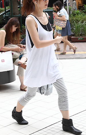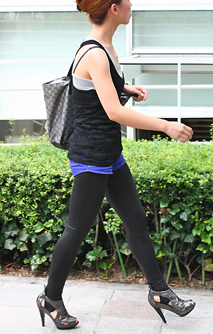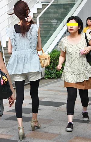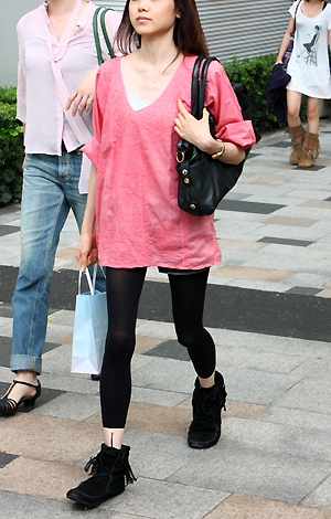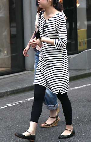 足の甲、または足先まで覆う細身の長ズボン、主にストレッチ素材を使ったタイツ状のパンツを着用する女性すべて。スパッツ、カルソン、フュゾーという別称も。色や柄、素材や丈は問わない。スキニーパンツやトレンカも含む。
