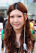 ヘッドドレスは安かったし、羽とビーズとコンチャが付いていたので買いました。色違いも持っています。もともと、フォークロア調ファッションが好きだったのでやっています。流行っているからしているわけではなくて、去年もこの格好をしていました。