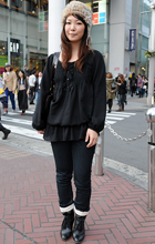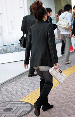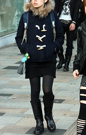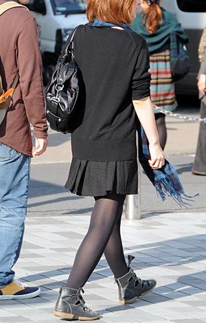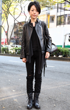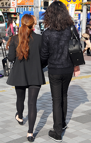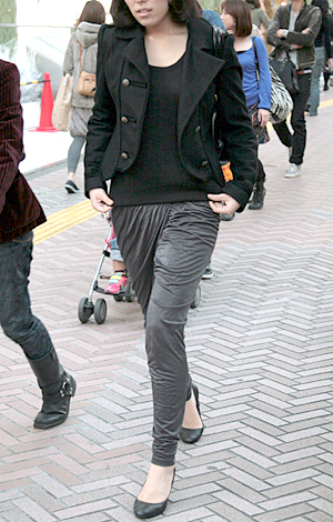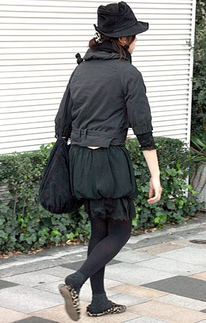 いちばん上に着用したアイテムが黒い色(または黒い面積が8割以上を占める)の人すべて。デザインや素材は問わない。ワンピースを1枚で着用している人も含む。