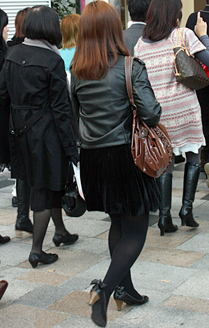 ボトムスが黒い色のものを着用している人すべて。スカート、パンツなどデザインや素材は問わない。