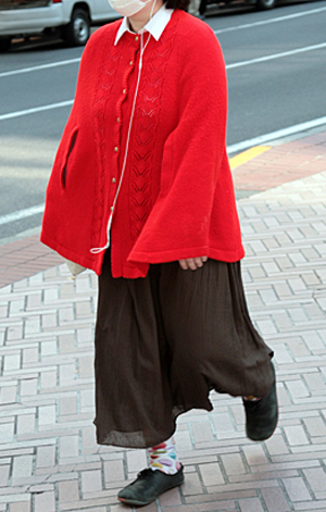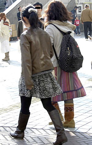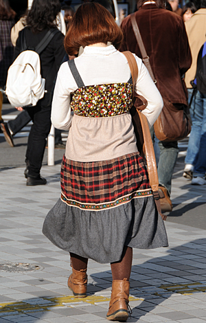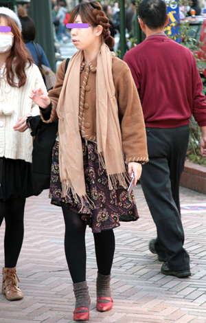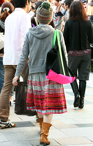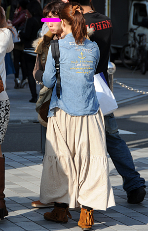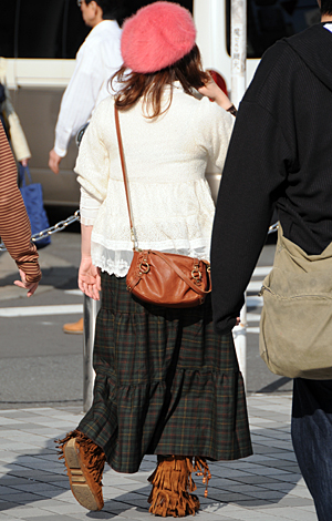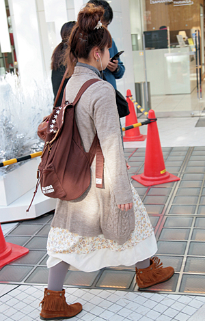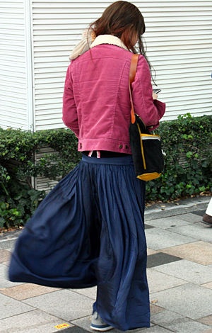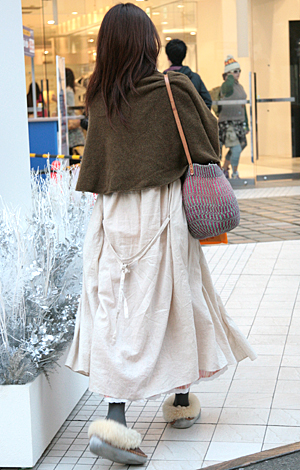 ミニ丈ボトムスの大ブームの中、森ガールはロングスカートを着用...