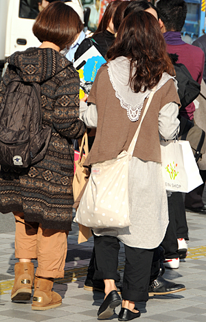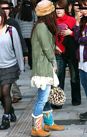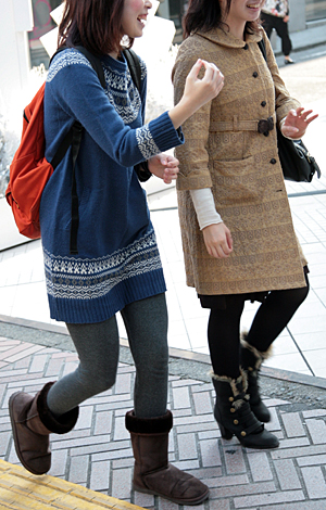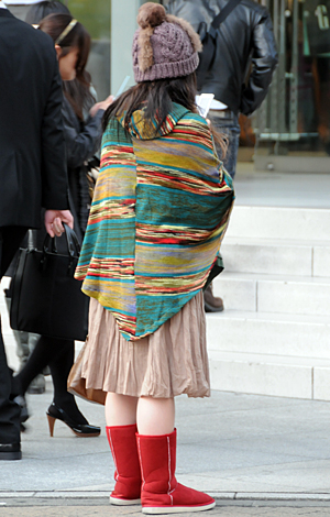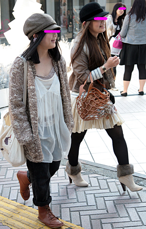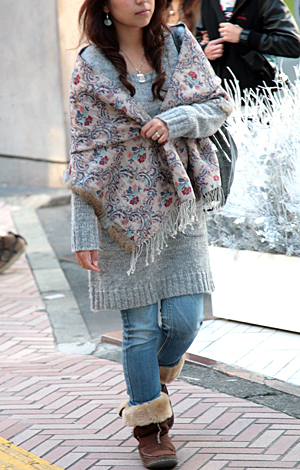 帽子の着用率も高い。ファーやニット、ボアなど暖かみを感じさせ...