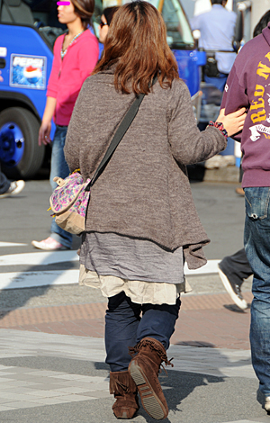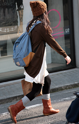 森ガールはブーツやバッグを茶系で統一。レザーアイテムでもハー...