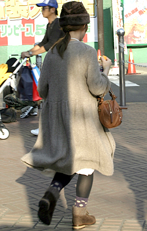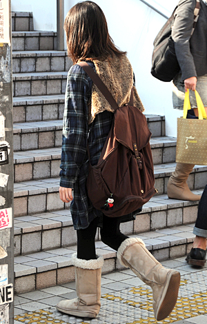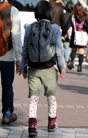 リュックやレッグウォーマーなどアウトドアアイテムをミックスし...