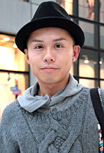 いつも冬はオールブラックが多いんですが、なんとなく今年は黒かなと思っていました。黒いスタイルの方がスタイリッシュに見えます。パンツはアジアっぽいボーダー柄だけど、黒でスタイリッシュに見えるところが好きです。