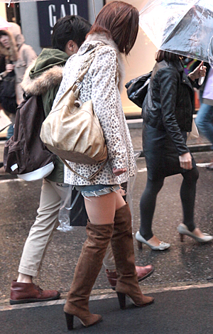 ギャル系にショート丈ボトムス+ニーハイブーツの組合せが人気。...