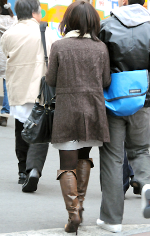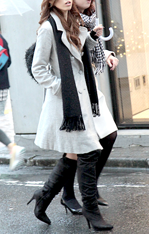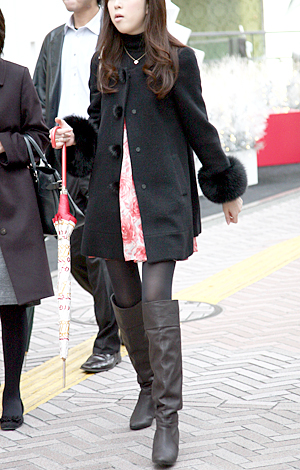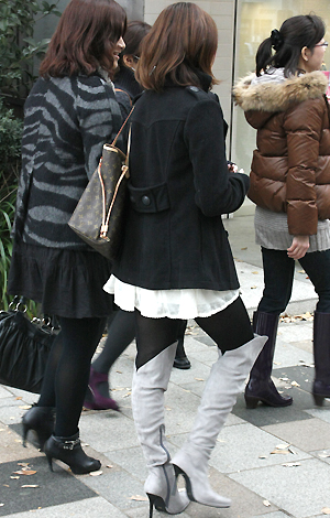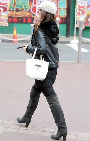 最も多いのがミニスカートとニーハイブーツの組み合わせ。ヒザ上...