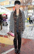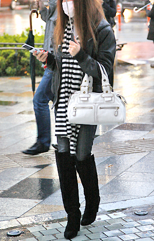 ニーハイブーツをブラウジングしたスタイル。今季はストリート系...