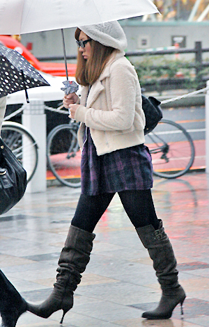 ティーンズには手持ちのブーツにニーハイソックスを合わせて、ニ...