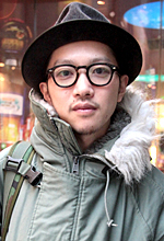 クラシックやジャズっぽい感じをイメージしてこのハットをかぶっています。6年前くらいから帽子をよくかぶります。いつもはハットやベレー帽が多いです。以前はニット帽もかぶっていましたが、今はあまりかぶりません。