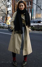 黒コーディネートの差し色として赤が浮上。強めの配色でインパク...