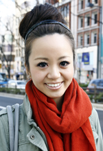 雑誌を見てアップヘアーにしました。カチューシャをつけた方がおしゃれかなと思って付けました。以前は、ストレートヘアで下ろしていることが多かったですが、アップにしてから顔周りがスッキリしたので、巻物を捲くようになりました。