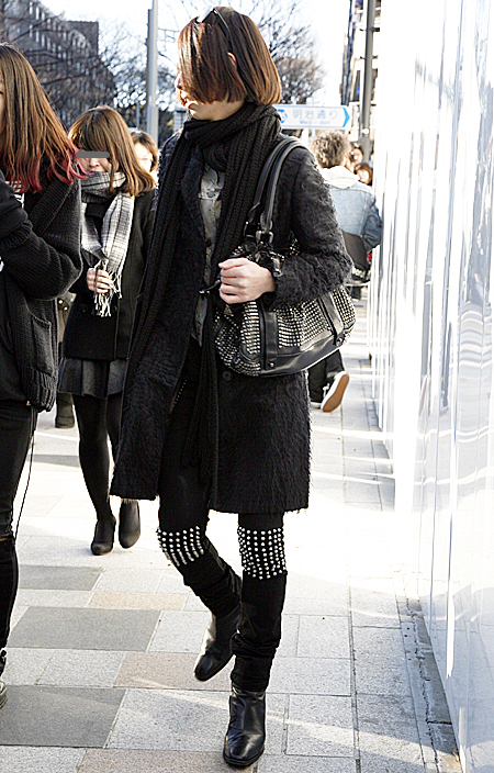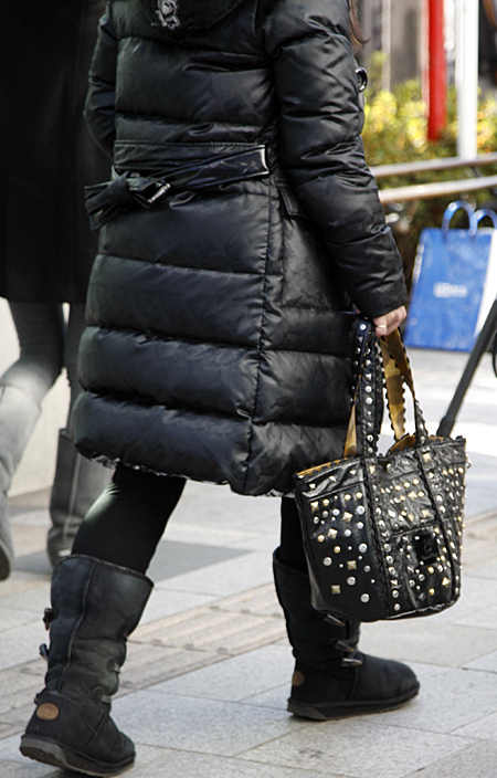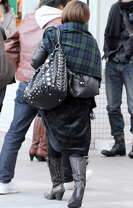 金属素材のパーツが目立つデザインのバッグや靴。留め金など必要なパーツでも金属の素材感が目立つようデザインされているものは含む。色やその他のパーツの素材は問わない。
