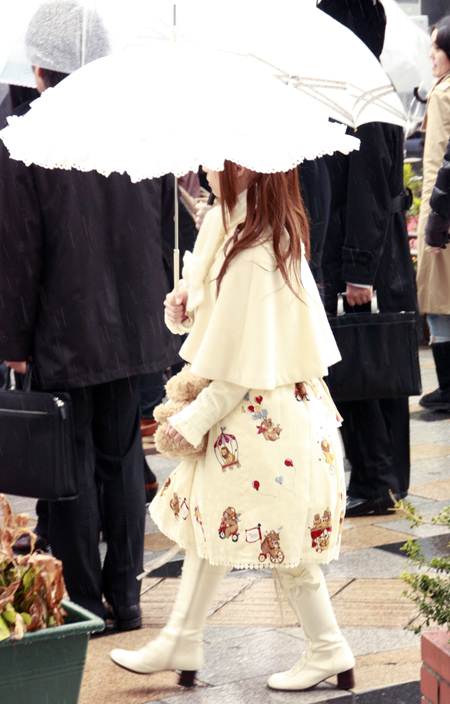 原宿ならではのロリータファッション。白をベースにレースやリボ...