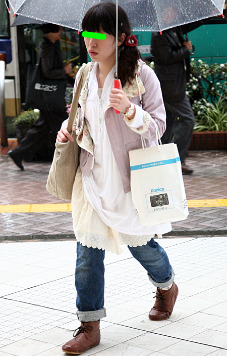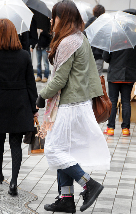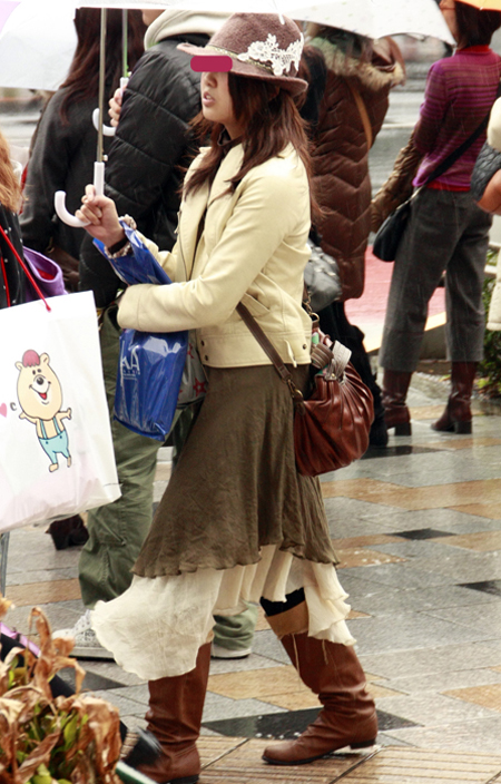 どこか少女っぽさのある着こなしが増えている。ブーツがやや減少...