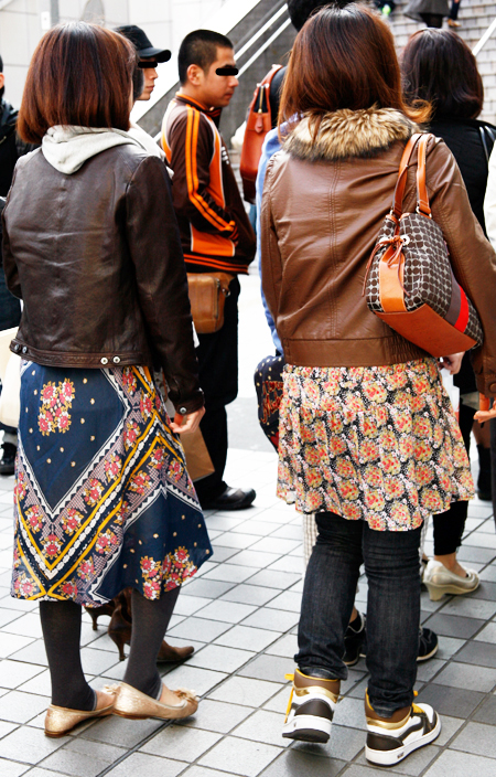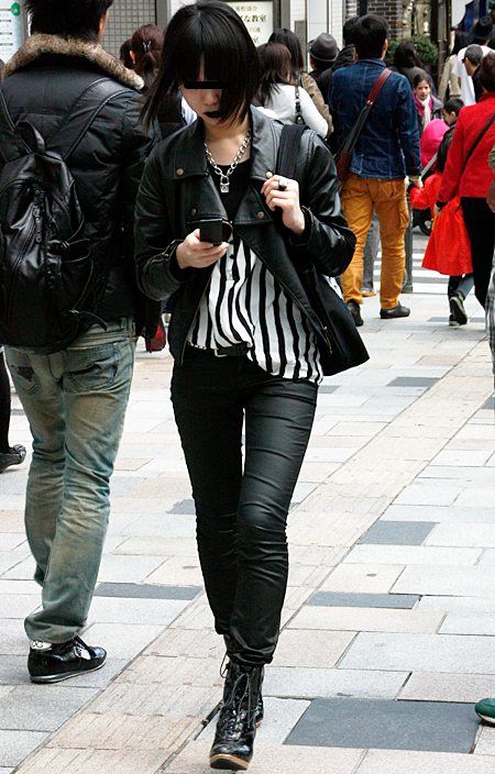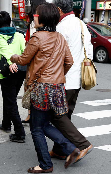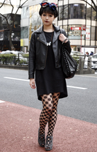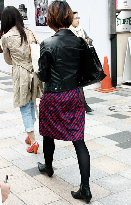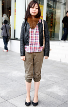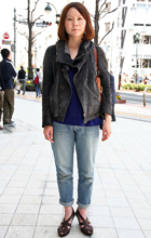 いちばん上に着用したアウターがレザーまたはフェイクレザーのものを着用している女性すべて。色や柄の有無は問わない。