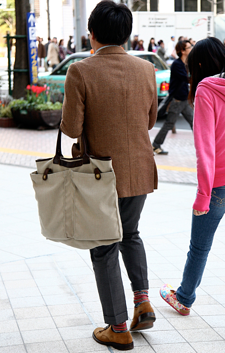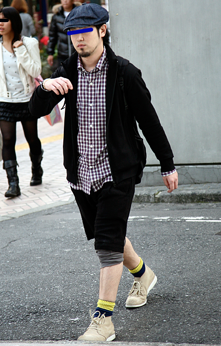 柄×柄のコーディネートが増えている。こちらは柄ソックス×柄サ...