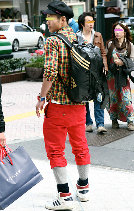 パンツの赤を、伊勢丹チェックのシャツやマルチカラーの時計、そ...