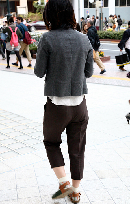 パンツルックが増加。ロールアップにソックスを合わせて肌の露出...