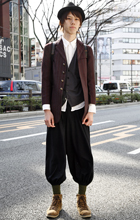 テーラードジャケットにサルエルパンツのセットアップスタイルも...