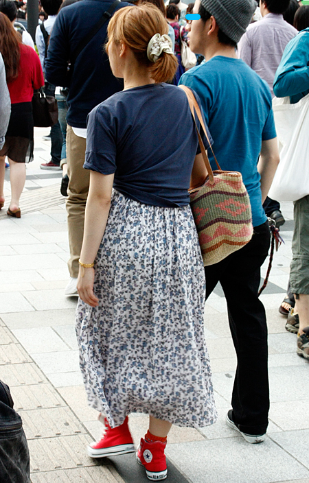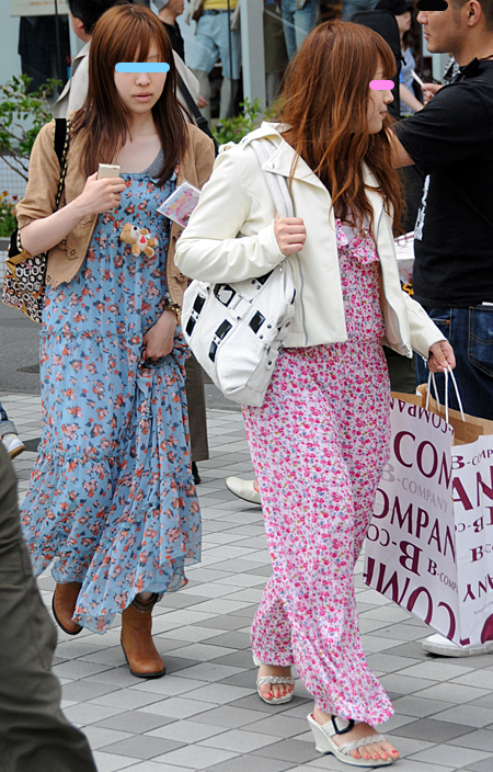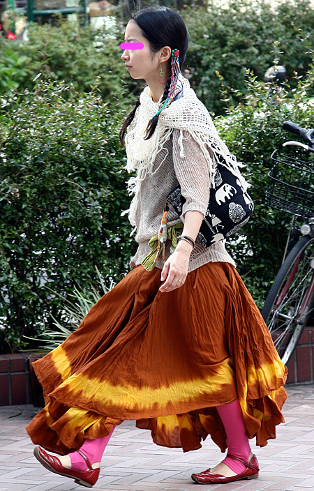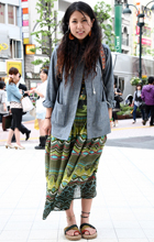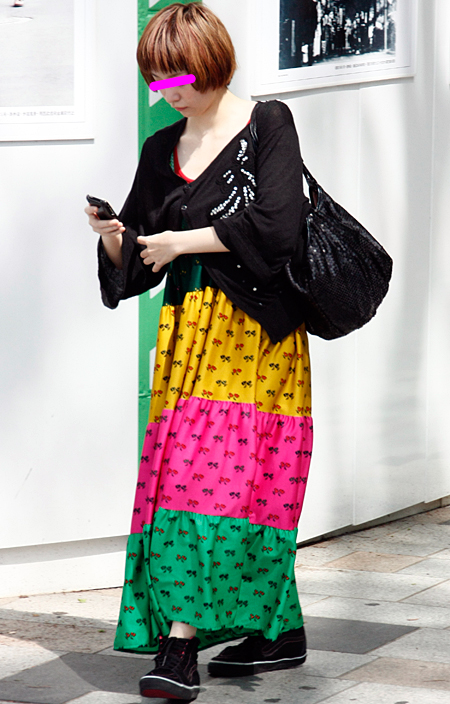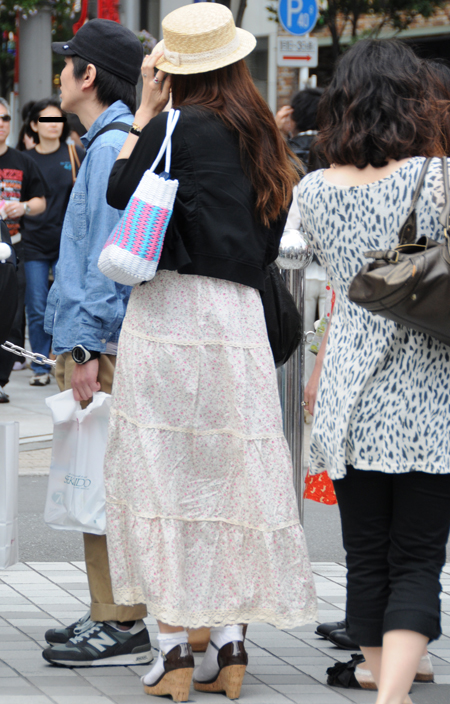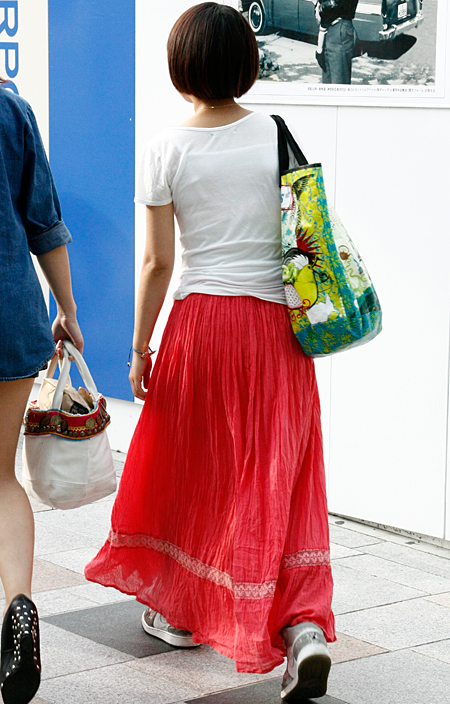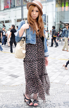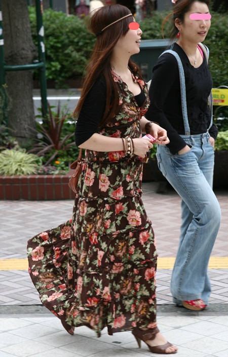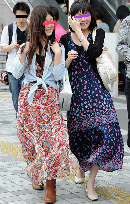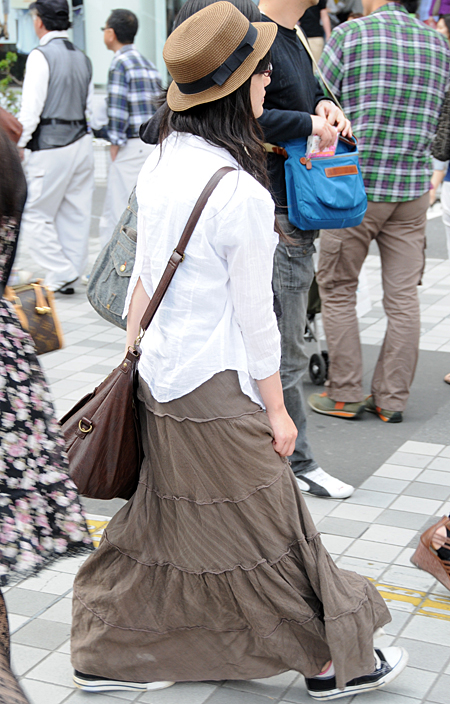 原宿ではマキシスカートやドレスをスニーカーでカジュアルダウン...