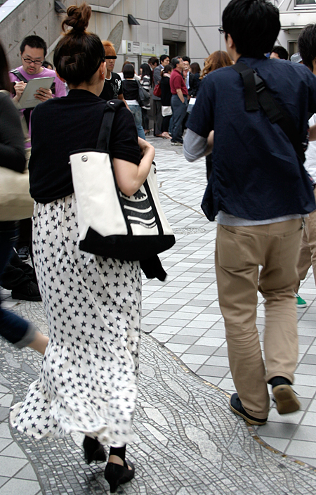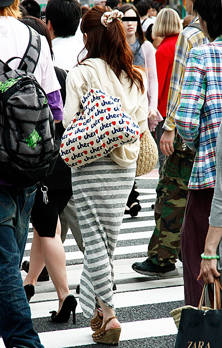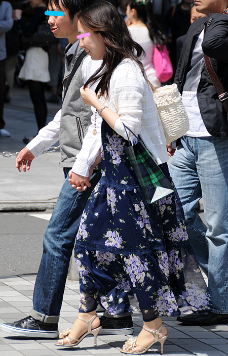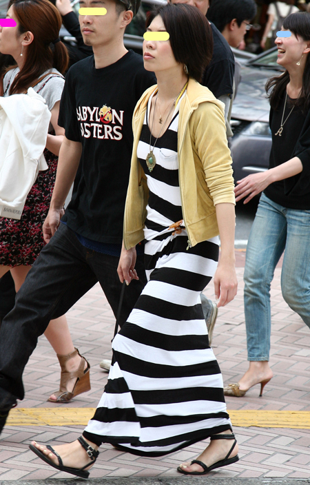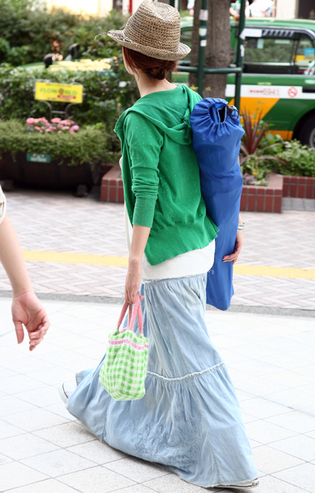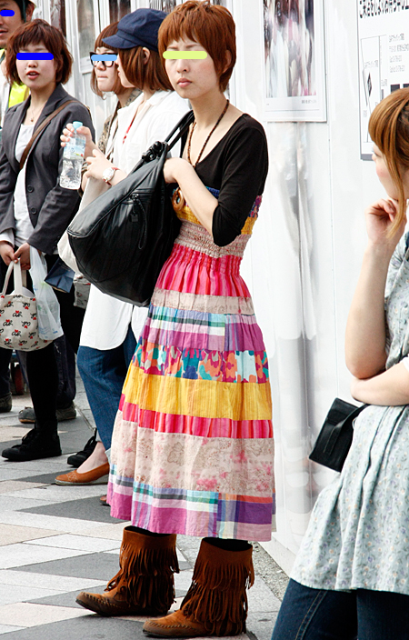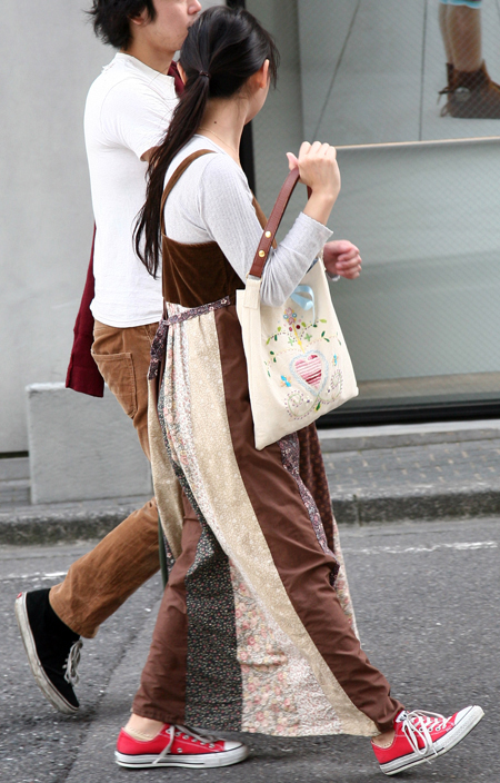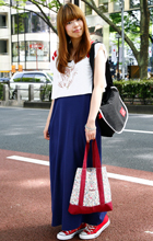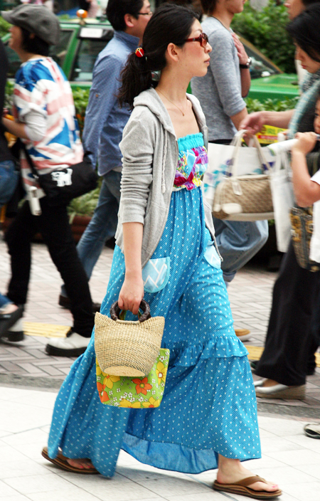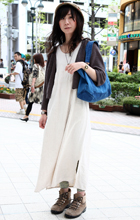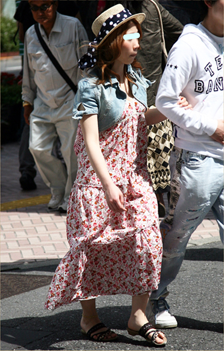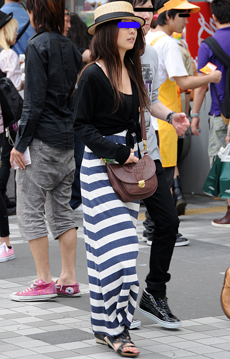 原宿ではマキシスカートやドレスをスニーカーでカジュアルダウン...