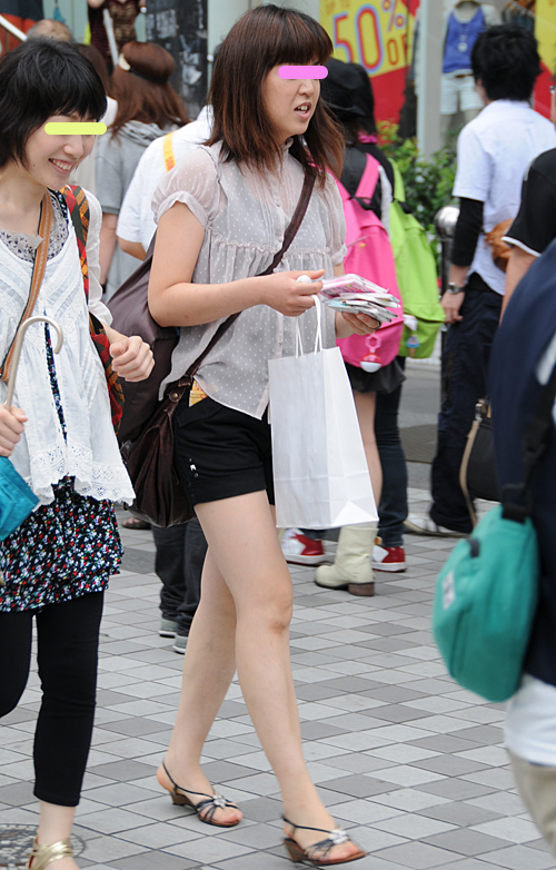 Tシャツも薄手素材になっており、肌がまだらに透ける生地のもの...
