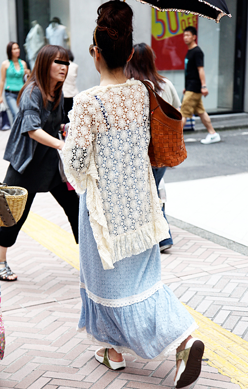 襟周りがクロッシェ編みのワンピース。「森ガール」のテイストが...