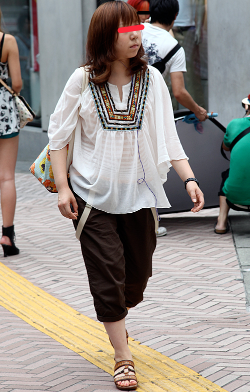 バルーンスリーブのブラウス。ギャル系にオンザ眉毛ヘアが浮上し...