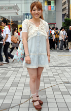 レースのジレでワンピースの露出を抑えたスタイル。シースルーは...