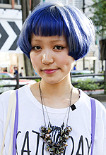 美容院に行った帰りです。白から青に染めました。ぷらぷらしています。