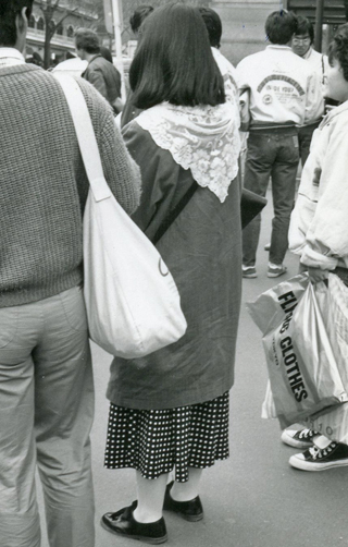 女性通行人 58.3%(2144人) うち、スカート着用 79.6%(1706人)男性通行人 41.7%(1533人)