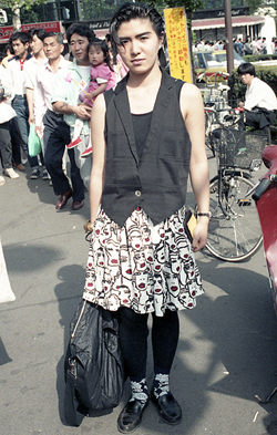 女性通行人 59.9%(1956人) うち、スカート着用 76.6%(1498人)男性通行人 40.1%(1311人)