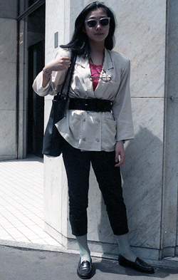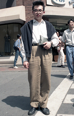 セルロイド製のフレームのものすべて。金属製のフレームは色が金・銀・黒でレンズが透明なもの以外は含む。ポケットにさしているもの、チェーンで吊しているもの、手に持っているものも含む。