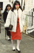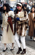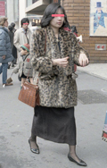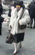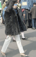 本物、偽物を問わず毛皮のコートやジャケットなど。襟元、袖口のみの毛皮使い、ムートンコートも含む。裏地が毛皮のものは除く。