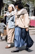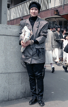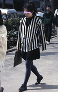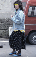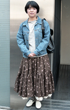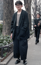 2色使いで定規で描いた円の柄が一面に入っているもの。トップ、ボトム、小物類全て含む。