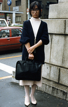 学生鞄のような、横長で持ち手が腕にかけられないタイプのもの。持ち手は1つでも2つでもかまわない。ショルダー用肩紐つき、リュックのように背負えるタイプのものも含む。素材は革、合成皮革、ビニールに限る。トランク、アタッシュケース、ボストン、ハンドバッグは除く。